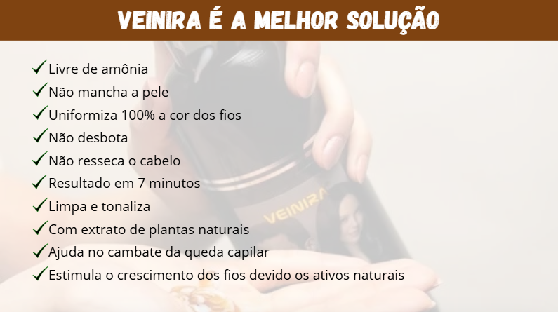 Confira abaixo o que torna Veinira um produto diferenciado de outros tonalizantes.